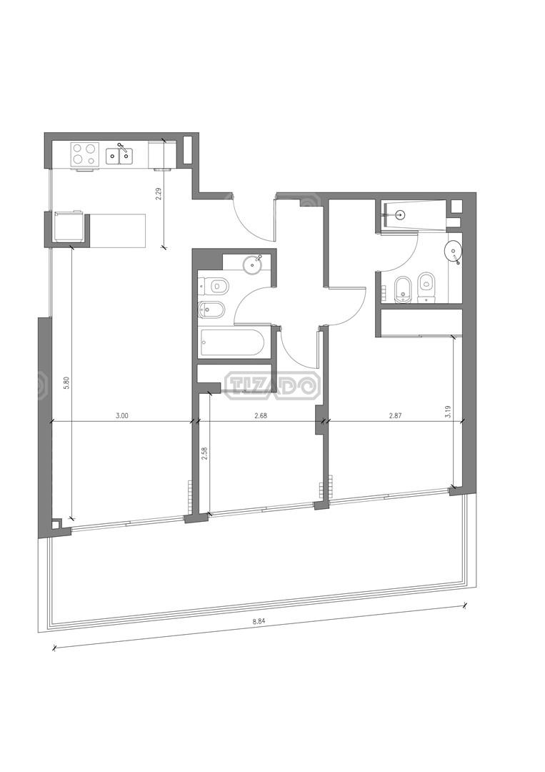 Excelente departamento de 3 amb. nuevo con balcón terraza y vista panorámica en Colegiales, muy luminoso. Dormitorio en suite, segundo baño completo.