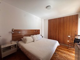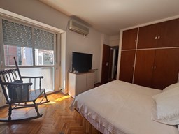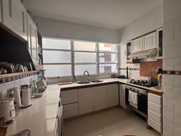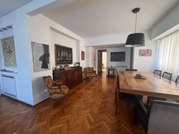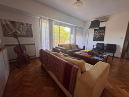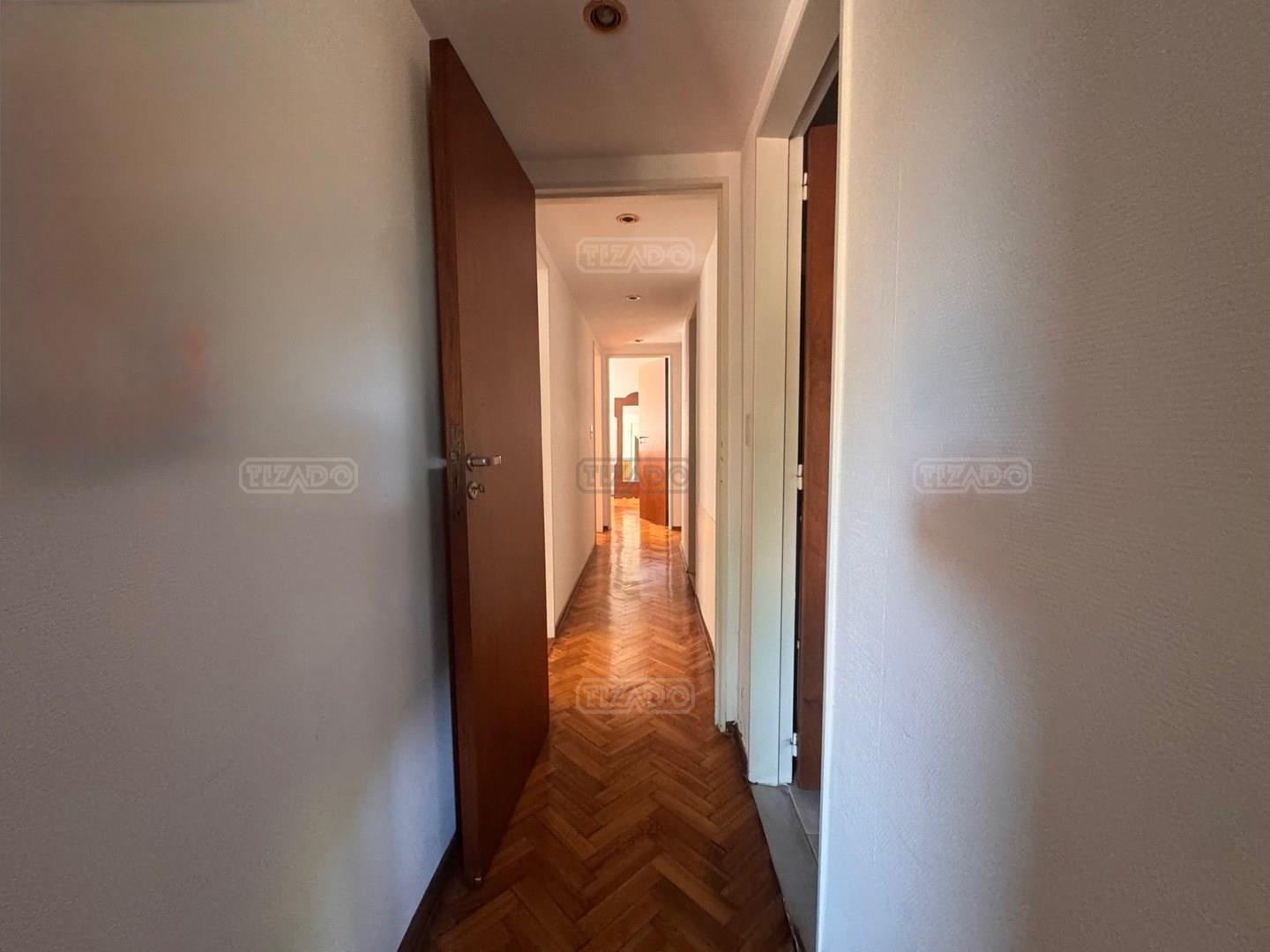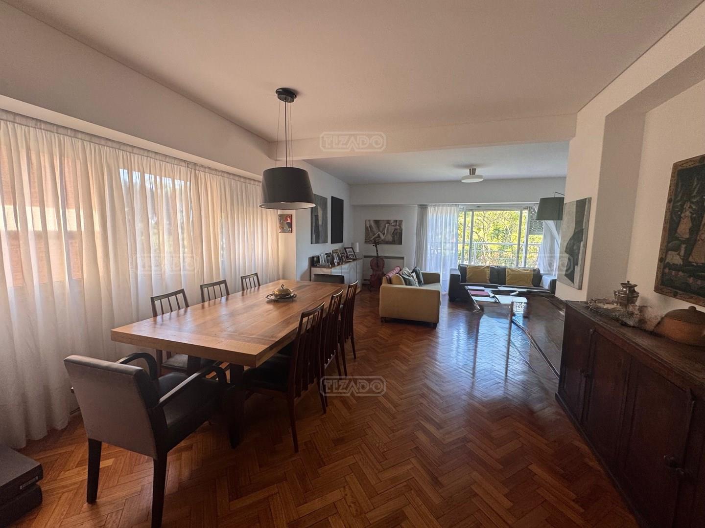 Semipiso con palier privado. Edificio Laguzzi. Hall de entrada, living y comedor, toilette, hall intimo, cuatro dormitorios , 2 baños completos (uno con jacuzzi y otro con ducha), cocina con comedor diario, dependencia de servicio con baño. Lavadero independiente. Cuenta con cochera fija y baulera. Doble circulación. Baños y cocina recicladas a nuevo. Pisos de parquet, persianas de PVC. Muy bueno lugar de guardado. Aire acondicionado en dos dormitorios. Vigilancia 24 hrs.
