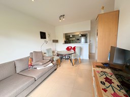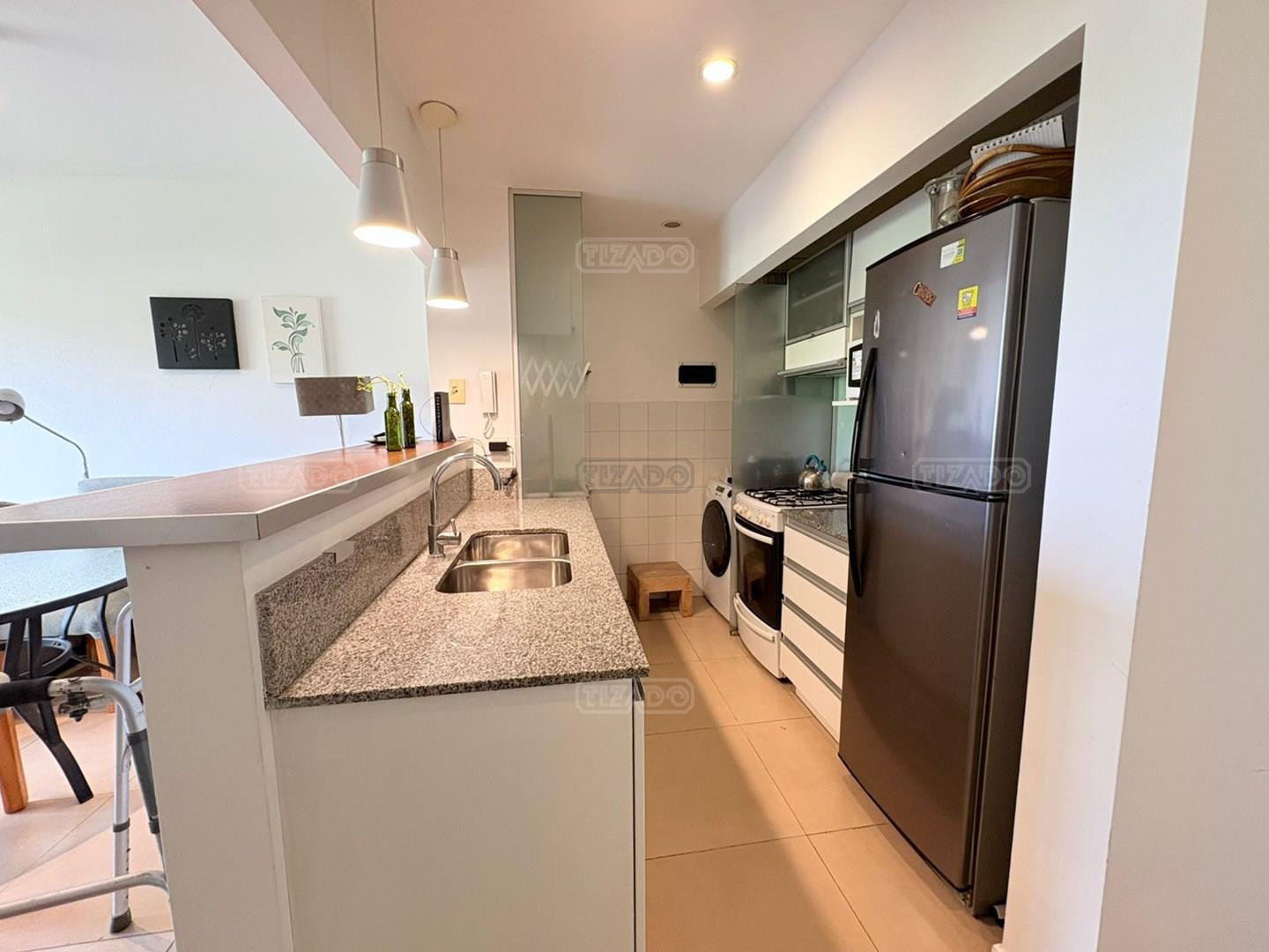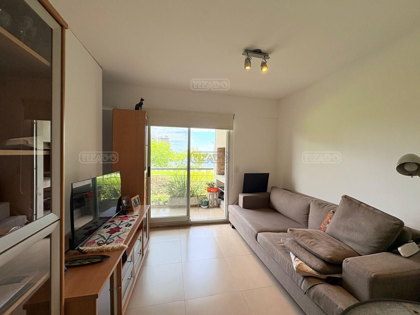 Departamento en venta monoambiente divido con vista al lago central Edificio Panorama, Barrio Sendero El departamento cuenta con cocina con lavadero y barra que integra la cocina con el living. Cuenta con una división hacia el dormitorio con una vista increible al lago. Posee caldera dual, para el agua caliente y la losa radiante. El Bario Sendero cuenta con 2 canchas de tenis, 1 cancha de futbol y el complejo Panorama cuenta con Pileta con solarium y Sum