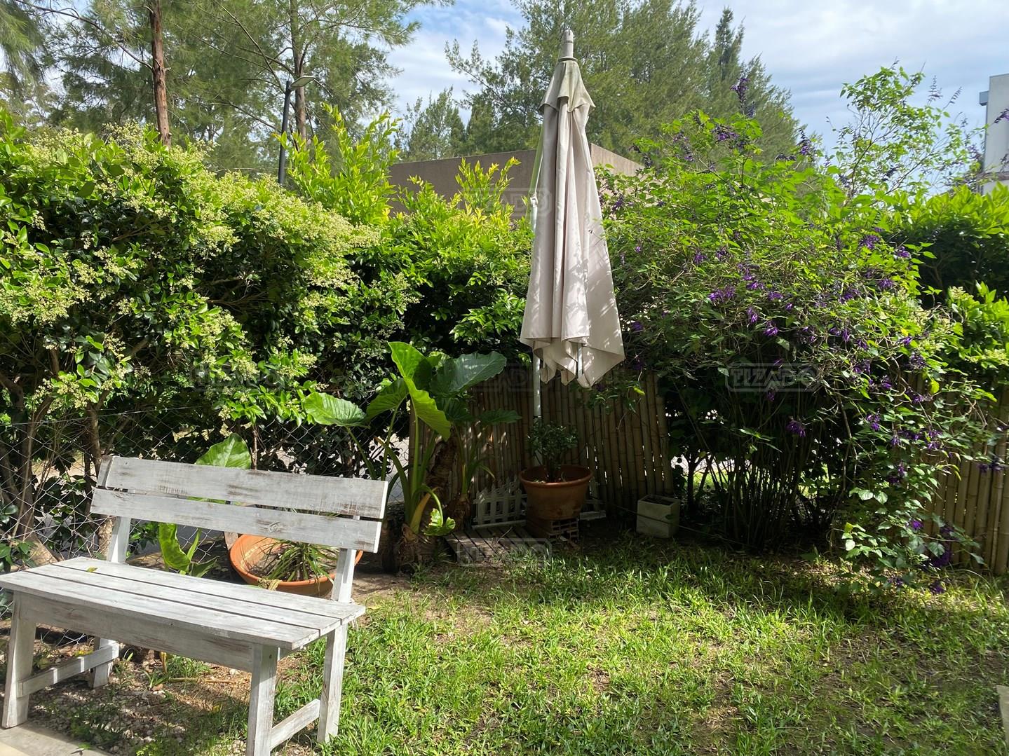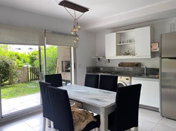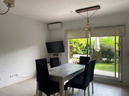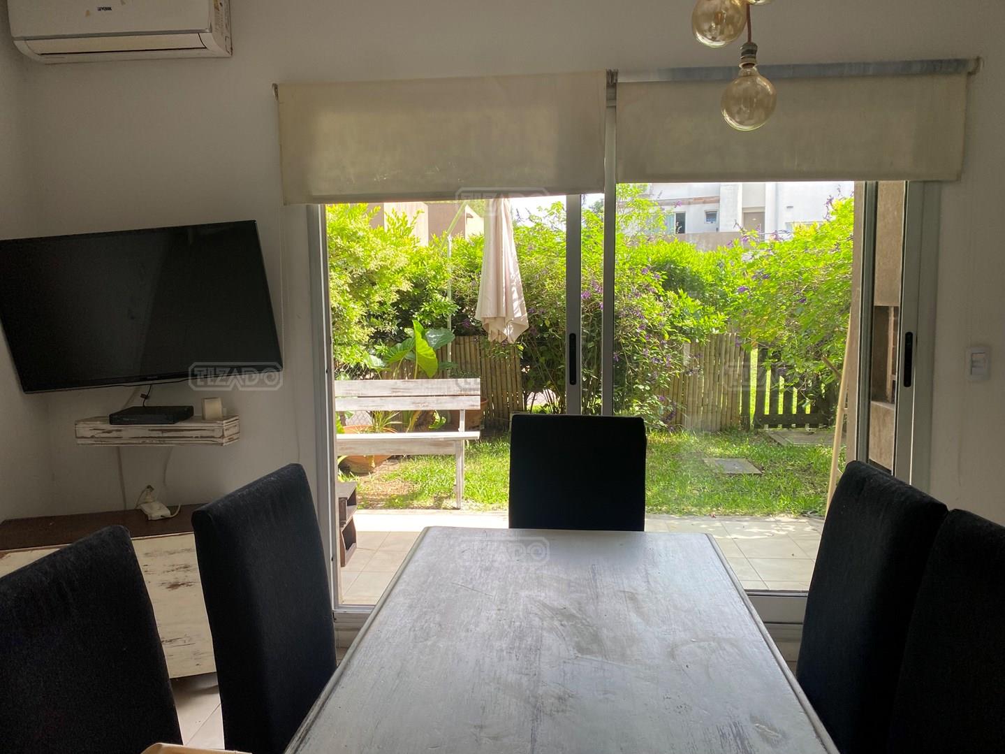 Cómodo departamento de 2 ambientes en planta baja con jardincito privado ya que está muy tupido el cerco! Hall de entrada, estar comedor con la cocina integrada, dormitorio y baño completo, galería con parrilla, jardín y cochera descubierta. Equipo frío calor en cada ambiente. El barrio cuenta con pileta, cancha de futbol y cancha de tenis