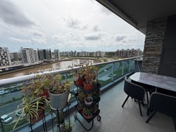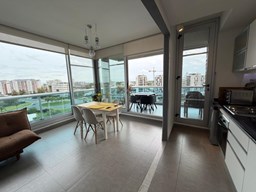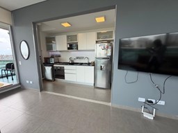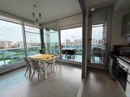 Espectacular departamento de 2 ambientes en esquina con una vista. Posee un dormitorio en suite. El complejo cuenta con pileta, gimnasio y doble SUM en la terraza del edificio con una vista abierta al río, con parrilla, aire acondicionado, heladera, microondas, etc. Diseño que permite visuales de privilegio sobre la bahía, a través de una superficie totalmente vidriada. El edificio está compuesto por 54 unidades de vivienda, 61 cocheras y 50 bauleras. Se desarrolla en 7 pisos con 8 unidades por piso de 2 y 3 ambientes.
