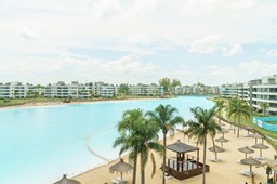 Departamento PB tres ambientes con jardín con vista a la Crystal Lagoon. El confortable departamento se encuentra en una inmejorable ubicación y para los amantes de las actividades acuáticas ( sin motor) no deja de ser el mejor lugar para disfrutar la laguna artificial con playas de arena. Cómodo acceso desde la Panamericana en el Km 46.5 por la avenida Caamaño que ofrece un amplio espectro de gastronomía y centros comerciales de categoría, como también colegios bilingües cercanos. El departamento posee dos dormitorios uno de ellos con vestidor, baño completo , cocina de concepto abierto con el living con grandes ventanales que cierran el acceso a la galería con parrilla seguida de un amplio jardín. Posee AACC frío calor en sus ambientes. El complejo tiene acceso a actividades deportivas con sus canchas de tenis , futbol , vóley. Área de Gimnasio y actividades de los mas chicos. Con vista la laguna , el House cuenta con un resto con buena gastronomía. Seguridad las 24 horas , guarda coche propio y de cortesía. Actualmente con alquiler temporal.