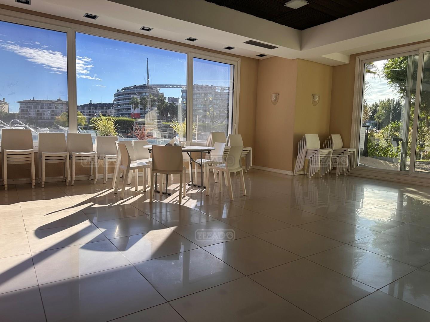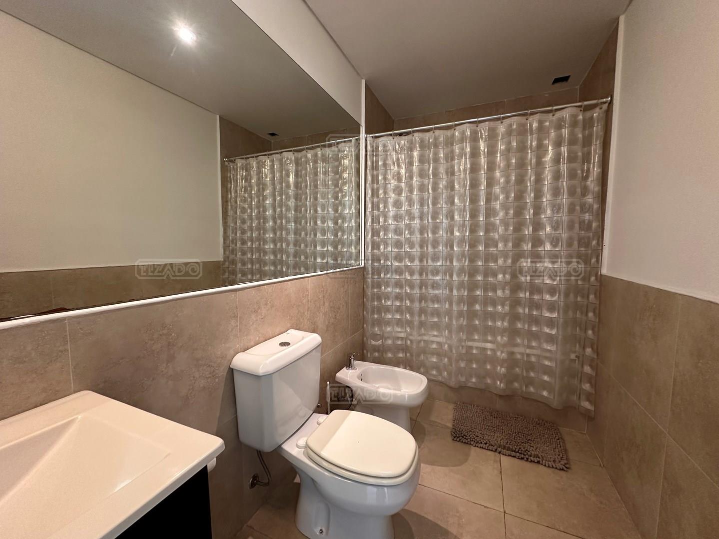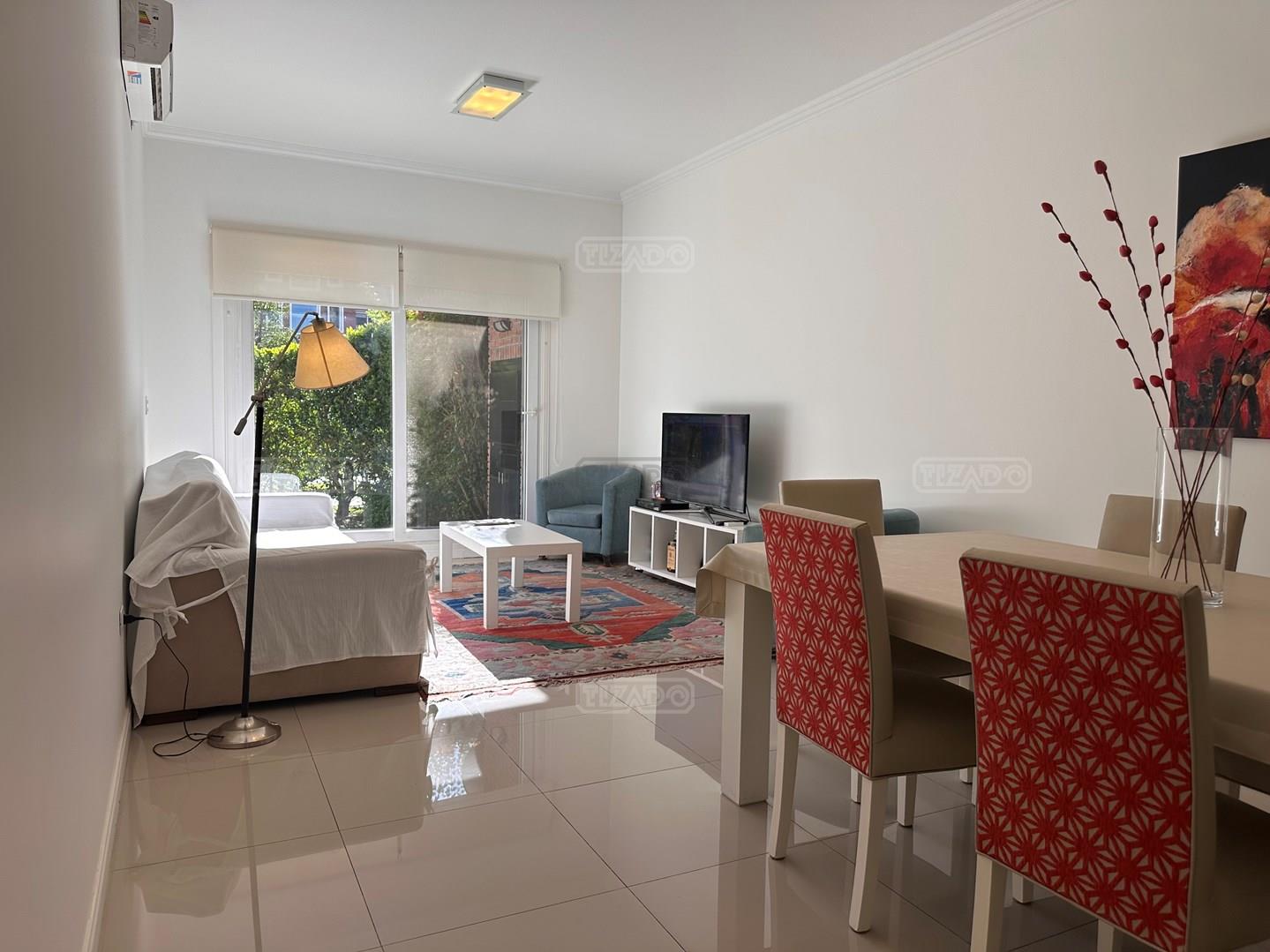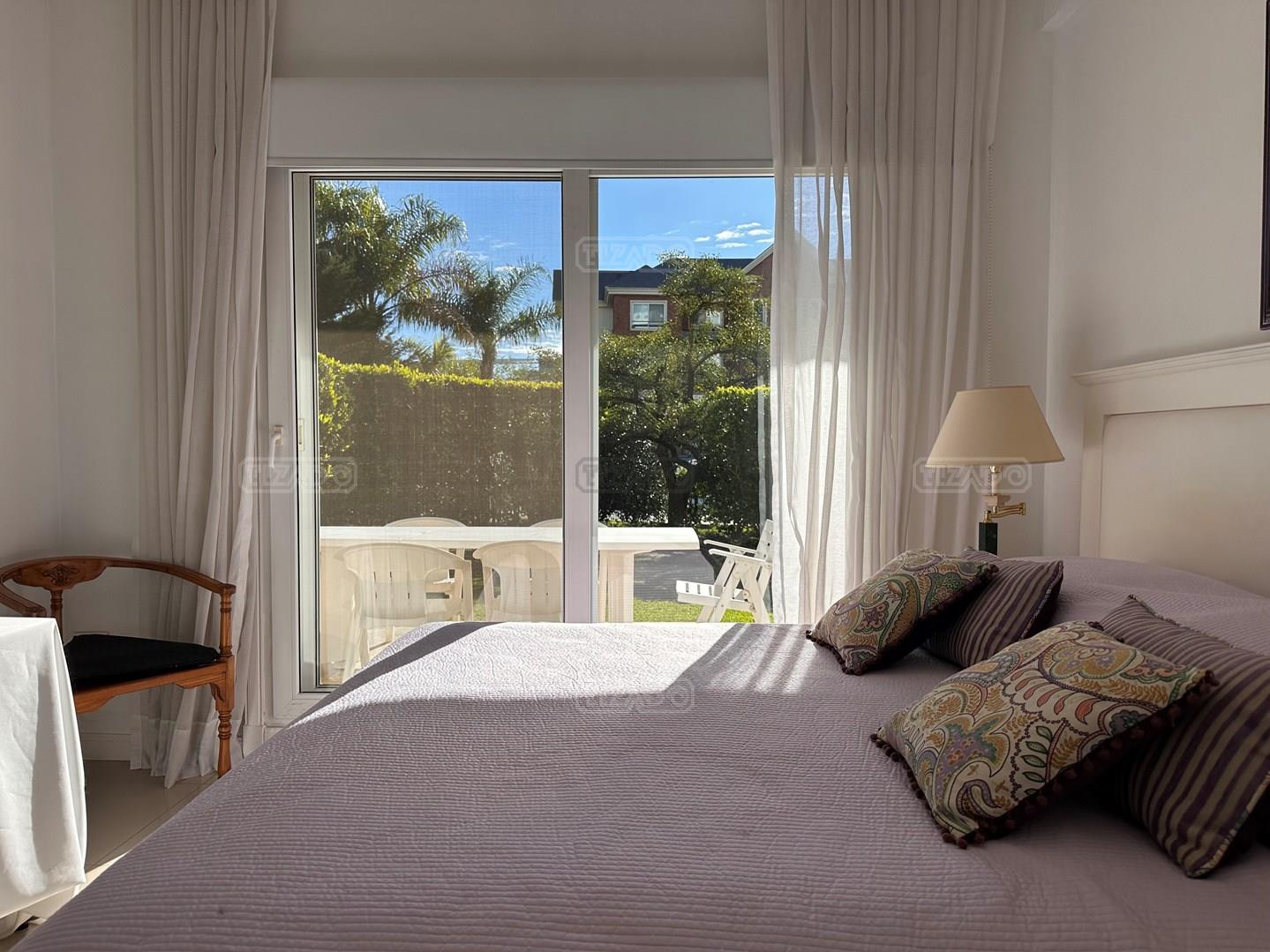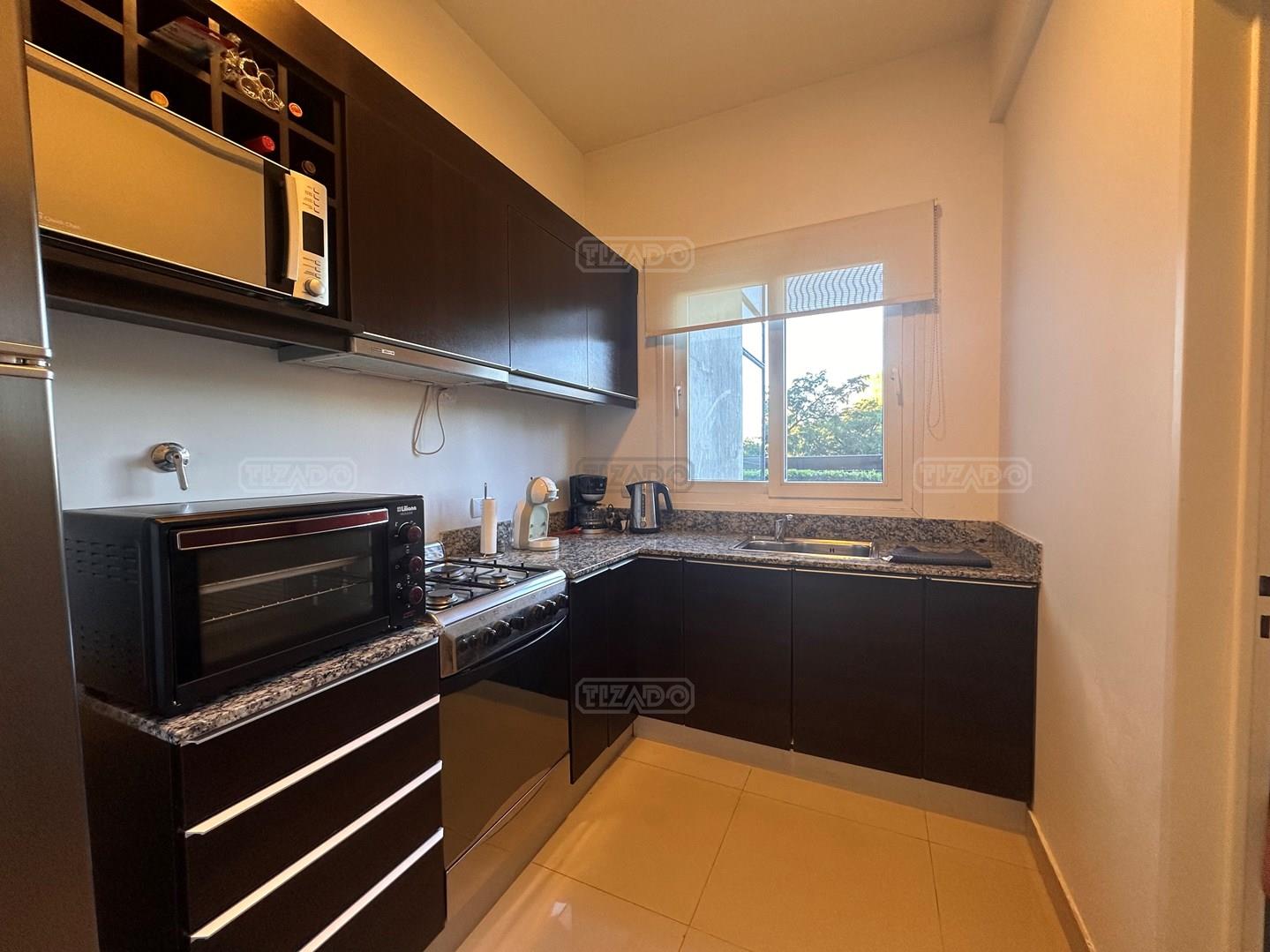 Miradores de la Bahía. Departamento con jardín propio. 3 amb más dependencia ( con baño completo). Ambientes: Living comedor +cocina independiente + Dos dormitorios en suite + dependencia + Toillete + galería con parrilla+ Jardín propio + Cochera subterránea Hermoso tres ambientes con jardín propio, orientación Norte Oeste sobre el jardín, tiene mucha luz natural. Su acceso al sector de amenities es peatonal, con salida directa desde el jardín. Miradores de la bahia es un complejo ya escriturado. Terminaciones: Tiene calefacción por losa radiante, 3 equipos de aire frio/calor. Cortinas screen en living y black out en dormitorios. Las aberturas son DVH de PVC Se destaca por sus excelentes amenities: restaurante, Gimnasio, tres piletas (una climatizada), Salón de usos múltiples, salón de juegos. Guardia privada con seguridad 24 h.