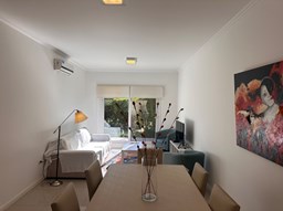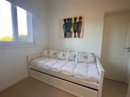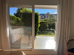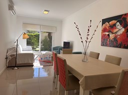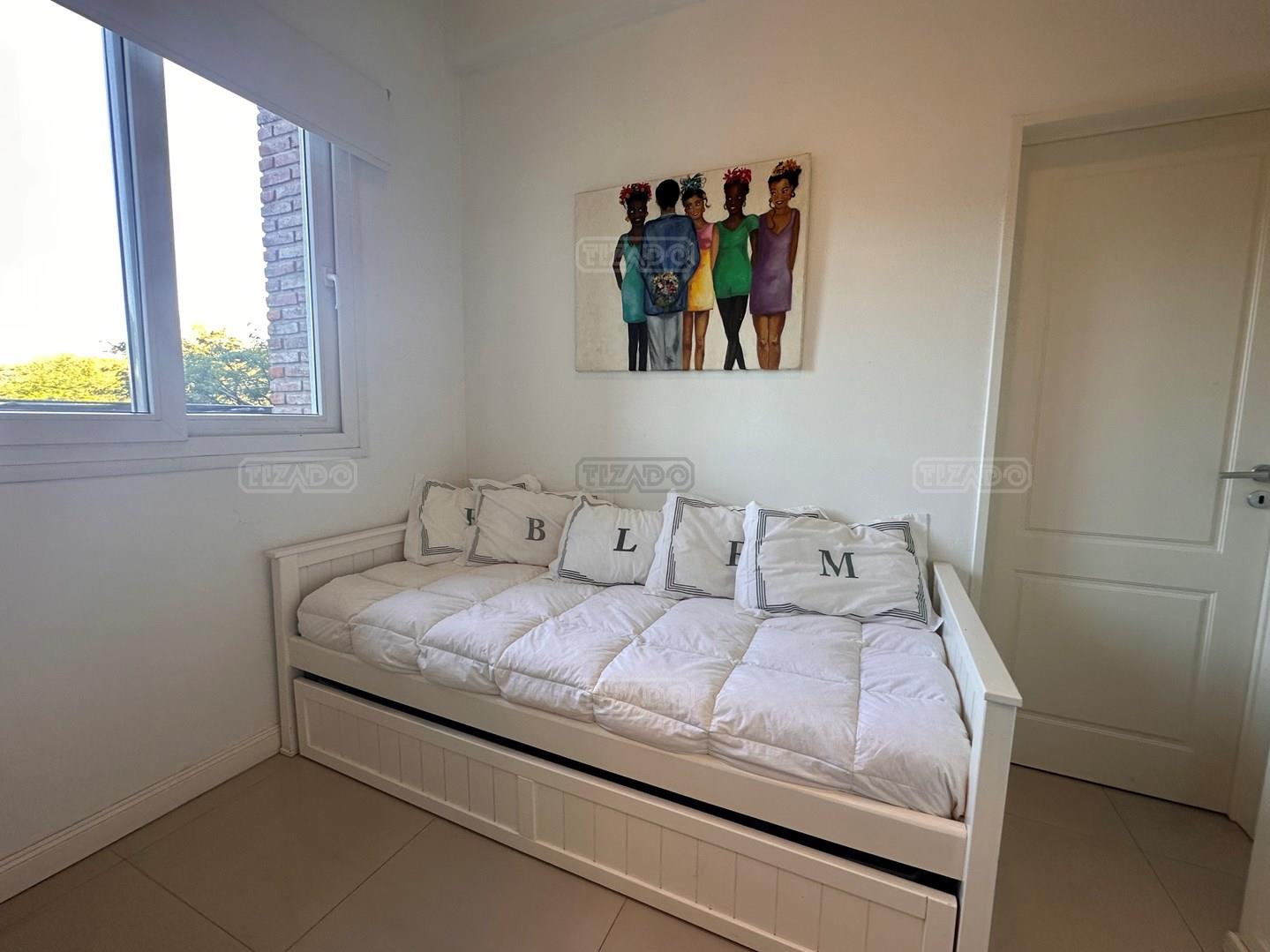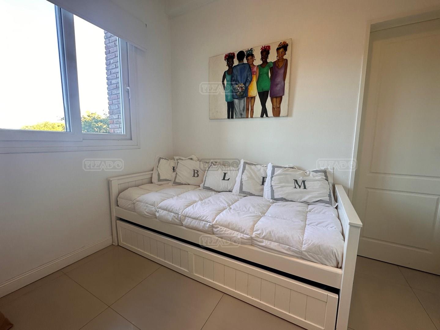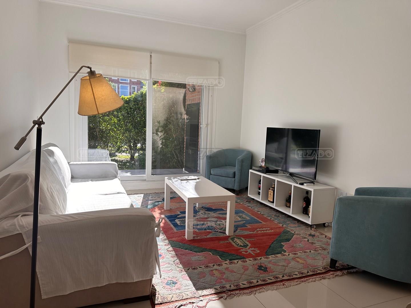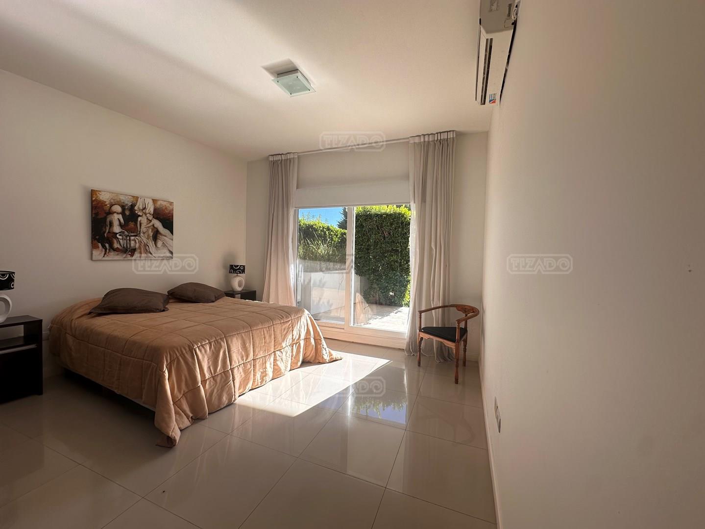 Miradores de la Bahía. Departamento con jardín propio. 3 amb más dependencia ( con baño completo). Ambientes: Living comedor +cocina independiente + Dos dormitorios en suite + dependencia + Toillete + galería con parrilla+ Jardín propio + Cochera subterránea Hermoso tres ambientes con jardín propio, orientación Norte Oeste sobre el jardín, tiene mucha luz natural. Su acceso al sector de amenities es peatonal, con salida directa desde el jardín. Miradores de la bahia es un complejo ya escriturado. Terminaciones: Tiene calefacción por losa radiante, 3 equipos de aire frio/calor. Cortinas screen en living y black out en dormitorios. Las aberturas son DVH de PVC Se destaca por sus excelentes amenities: restaurante, Gimnasio, tres piletas (una climatizada), Salón de usos múltiples, salón de juegos. Guardia privada con seguridad 24 h.