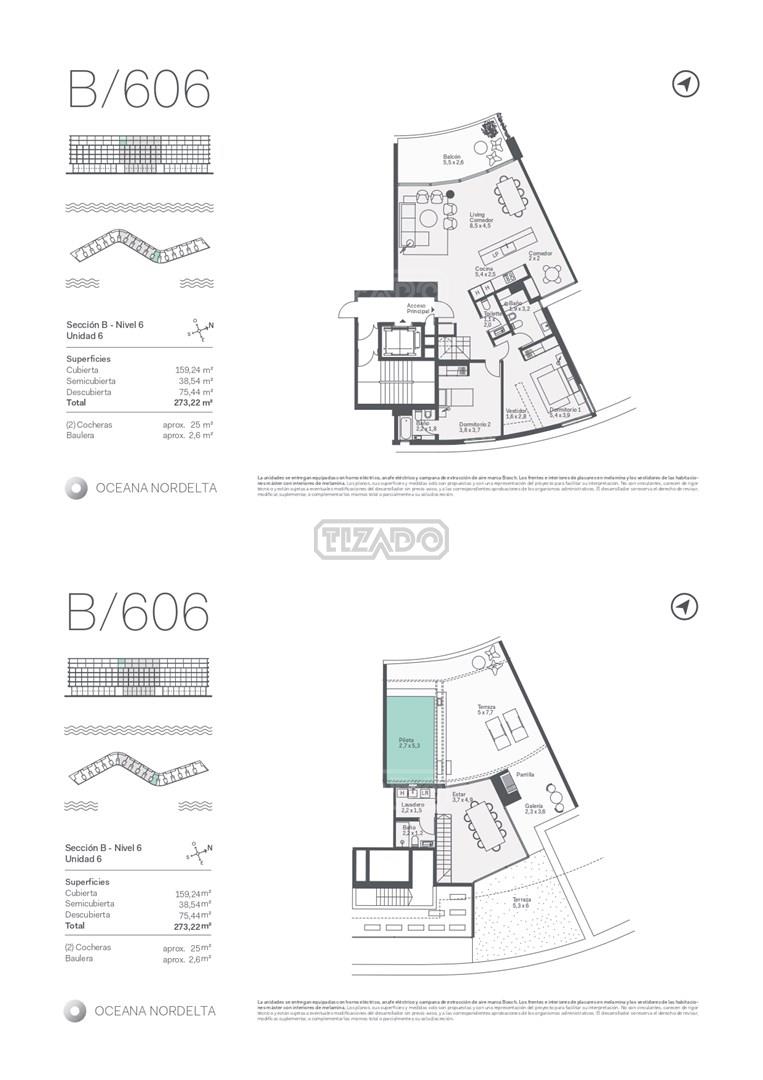 Desarrollos residenciales con un concepto en común: el agua y el arte. Oceana expresa los estándares de calidad de Consultatio: una locación única, construcción high-end y criterios de sustentabilidad. Exhibe ya dos desarrollos exitosos en Estados Unidos, localizados en Bal Harbour y Key Biscayne, y en Argentina estará presente en Puerto Madero y Nordelta. Una propuesta de vida diferente que busca redescubrir los espacios a través de nuevas formas de vinculación con sus entornos. Detalle de Terminaciones. Planta Baja – Niveles de Acceso – Plaza. - Acceso vehicular por calle exclusiva hasta el lobby de acceso residencial (drop-off). - Acceso vehicular a cocheras cubiertas con sistema de control de acceso a rampa y garita de seguridad. - Programa de arte en halles y circulaciones. - Halls amplios de acceso en doble altura con carpinterías de aluminio, pisos graníticos pulidos y revestimientos de primera calidad. Escalera monumental de vinculación a amenities de Subsuelo. - Estacionamientos de cortesía. - Jardin de acceso parquizado. - Muelle privado y mirador hacia la laguna. - Amenities en planta baja: dos salas de reuniones independientes. Baño y kitchenette privado. - Edificio implantado a 100m aproximadamente de la Av. Del Golf. Subsuelo. - Cocheras. Acceso y egreso vehicular por rampa. - Estacionamiento para bicicletas. - Acceso directo a los núcleos de circulación vertical. - Bauleras de las unidades. - Pileta climatizada cubierta. - Gimnasio con aparatos de última generación . - Sanitarios, Vestuarios y Duchas. - Salón de Usos Múltiples y Confiteria con cocina independiente y baños. - Salón de relax, yoga o spa, lounges y playrooms. - Sala de ensayos. - Laundry en cada sector. Características del Edificio. - Fachada combinada de revestimientos decorativos, vidrio y bandas de hormigón. Carpinterías de aluminio con doble vidriado acústica y térmica. - Pileta y solárium exterior. Senderos peatonales rodeando la laguna. - Palieres semi privados servidos por ascensores de última tecnología. - Energía de emergencia disponible para cada unidad (desde grupo electrógeno central). - Certificación sustentable, construcción sostenible, consumo de energía y de agua eficiente / sustentable. - Town houses en planta baja y primer piso tipo dúplex con 2 o 3 dormitorios, livings en doble altura. Terrazas / Jardines privados con parrilla, piletas y vista a la laguna. - Unidades pasantes con vistas este/oeste. Livings anchos y apaisados, terrazas al lago, terrazas con parrillas al Este. - Pent Houses y unidades tipo en los extremos del -edificio con amplias terrazas semicubiertas. - ½ km Loop de Joging “field Track”. Revestimiento de sanitarios. - Los baños principales serán revestidos en porcelanato y detalles de piedra natural o similar. - Los baños secundarios serán revestidos en porcelanato. Revestimiento de pisos y zócalos. - Todos los pisos de baños llevaran porcelanato. - El piso de palier irá en porcelanato. - Revestimiento interior de las unidades y exterior en balcones y terrazas ira en porcelanato. - Los zócalos serán de madera. Mesadas. - En cocinas se colocarán mesadas de Quarzo tipo silestone o similar con bacha de acero inoxidable. - En los Baños de dormitorios principales y secundarios serán mesadas de Quarzo tipo silestone o similar con muebles de apoyo. Artefactos, griferías y accesorios de baños. - Artefactos sanitarios y griferías de bajo consumo y buena calidad. Equipamiento de cocinas. - Los muebles de cocina de diseño contemporáneo. Materiales y herrajes de primera calidad. El equipamiento de cocinas estará constituido por los siguientes elementos: Un horno eléctrico, anafe eléctrico y campana de extracción de aire con filtros de aire con carbono activo. Se dejarán previstas las conexiones eléctricas, de agua corriente y desagüe, para la instalación de Lavavajillas bajo mesada. Se dejarán previstas las conexiones eléctricas, de agua corriente y desagüe, para la instalación de Lavarropas en mueble. Carpinterías. - Puerta de acceso principal de madera maciza de doble contacto. - Puertas placa de madera en interior de unidades de 2.30 m de altura. Instalaciones por Servicios Centrales. - Calefacción por piso radiante con control de temperatura individual por unidad. - Agua Caliente por caldera central. Aire Acondicionado. - Las unidades se entregan con sistema de aire acondicionado individual por volumen refrigerante variable (VRV) frio/calor con control de temperatura por ambiente. Closets. - Se entregaran frentes e interiores de placares