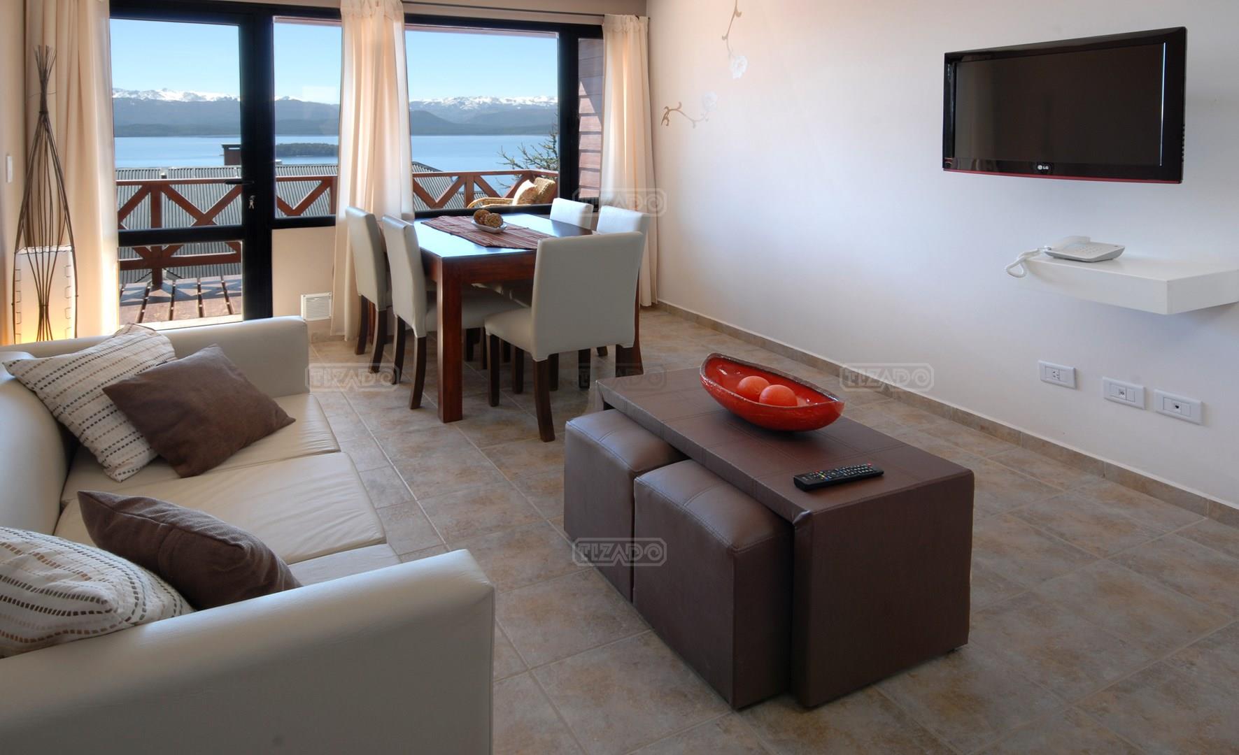 Departamento “Superior” en complejo Catalonia Sur, situado en barrio Pinar de Festa, entre las Av. Bustillo y Pioneros, destacado por sus vistas panorámicas al lago. El complejo posee solo 11 departamentos en dos bloques, más sector de amenities con piscina climatizada, quincho, gym y sauna, ideal para vivir en un lugar único o como una unidad de negocio para renta turística. Esta unidad se encuentra en el primer módulo y dispone de living comedor con salida a balcón, cocina integrada totalmente equipada, baño completo y 2 dormitorios. Muy buenas vistas al lago. Calefacción por losa radiante. Todos los servicios incluidos en las expensas. Venta totalmente amoblado y equipado listo para habitar o alquilar. Espacio de estacionamiento asignado dentro del complejo. Ni Tizado Propiedades (M&G Inmuebles Patagonia SRL), ni el Martillero a cargo son responsables de los indicadores urbanísticos, factibilidades de construcción, ni usos permitidos sobre el inmueble objeto del presente. Corredor y Martillero Matriculado: Sebastián Caretta - Matricula N.333-RP-20 F.412 T.Il