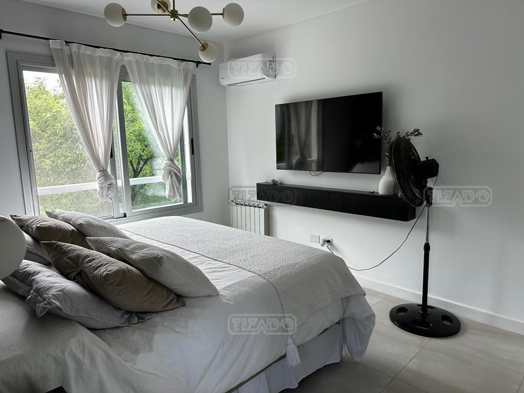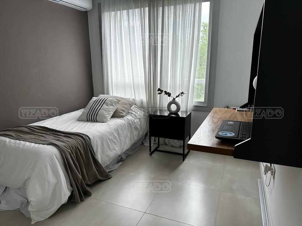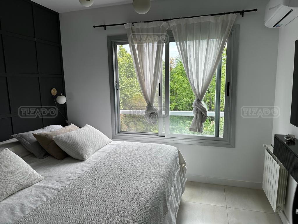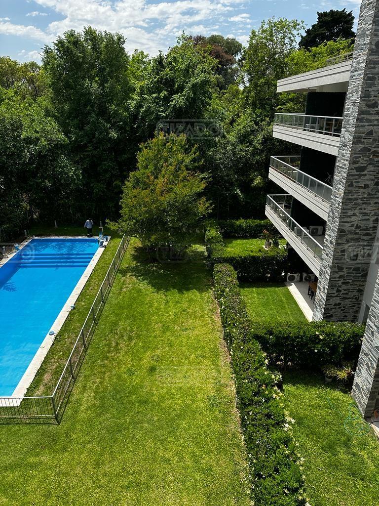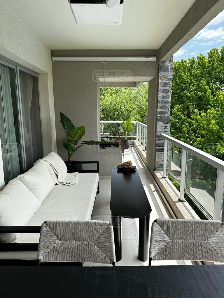 Imperdible departamento 4 ambientes de 140 m² cubiertos, con un balcón terraza, parrilla y dos cocheras fijas en planta baja. VENTA CON RENTA hasta Dic 2026.- EXPENSAS INCLUYEN AGUA Y MUNICIPAL Hall de ingreso, un amplio Liiving Comedor con dos ventanales al balcon, Toilette de recepción . Cocina semi integrada con barra. Lavadero independiente. Dos Dormitorios, uno de ellos en suite. Escritorio. 1 Baño completo.Lleno de luz. Terraza común con SUM cerrado, totalmente equipado y sector de parrilla descubierto con divinas vistas a la gran Arboleda que lo rodea. Pileta y solárium, jardín central parquizado en planta baja, Doble control de Acceso al complejo, Vigilancia 24 horas. UBICACIÓN: a pocos metros de la salida de Ramal Pilar KM 38,5 (salida TORTUGAS CC). Cercano a centro comercial Disco, Las Piedras, TOM, la más completa y alta jerarquía de todos los servicios: restaurantes, comercios, centros de salud, colegio St Catherine’s Moorlands School, entre otros. Construcción de primera calidad con aberturas de doble vidrio hermético (DVH), caldera dual para agua caliente y calefacción por radiadores; cuenta con aire acondicionado en todos sus ambientes. Una opción versátil, ideal para quienes buscan funcionalidad y confort.