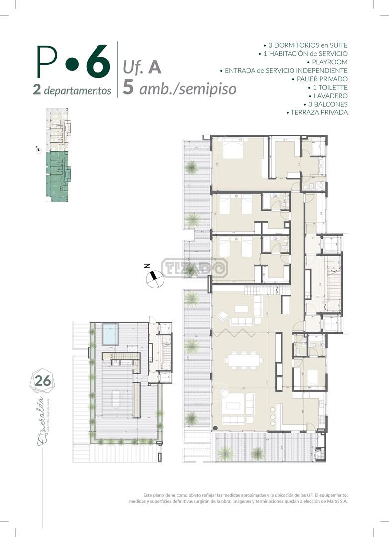 Torre Esmeralda llega a Nordelta con una nueva propuesta e intención en la zona, tratando de redescubrir nuevas formas de vinculación entre el habitar y el entorno que la caracteriza. Vivir la experiencia de un ambiente amplio dentro de un espacio semiurbano, adquiriendo una situación transformadora. Líneas rectas que se insertan en el marco de un lineamiento, en contraposición al canal enfrentado, manifestando una forma racional - orgánica que determinan el sitio. El Proyecto se localiza dentro de la Bahía, sobre el Paseo Ribereño, accediendo de modo privado por el Barrio Puerto Escondido. Se plantea sobre un predio de 3005 m2, con una orientación Noroeste. La construcción plantea unidades de 3, 4 y 5 (semipisos) ambientes de gran amplitud, unidades con terraza, balcones aterrazados. Se plantea sobre un predio de 3005m2, orientado al Noroeste. La Construcción propone unidades de 3, 4 y 5 ambientes ambientes, las cuales poseen accesos independientes, balcones aterrazados, y algunas están conformadas en Semipisos, con su entrada de servicio correspondiente. En la Planta Baja se encuentran todos los Amenities del Proyecto. Acceso y salida directo por dos calles diferentes. Cocheras propias con baulera o sin bauleras. Sectores destinados a servicio y mantenimiento. Estructura Hormigón armado según normas Cirsoc. Losas, vigas, columnas, bases, pilotes, de dimensiones de acuerdo a cálculo estructural y estudio de suelo. Mampostería Exterior: Muros de ladrillo hueco de e=18cm. Interior: Tabiques de ladrillo hueco de e=12cm. Cubiertas Accesible: Techo de losa plana de hormigón armado, con aislación hidráulica y solado flotante de baldosones de cemento para azotea transitable. Contrapisos En Planta Baja sobre losa de subsuelo, de hormigón liviano, apto para circulación peatonal y vehicular dónde corresponda. Sobre losas superiores, de hormigón liviano de aproximadamente 8 cm de espesor. Carpetas Para asiento de solados de Porcellanatos, de mortero a la cal reforzado. Cielorrasos Interiores: Aplicados y/o suspendidos, terminados con enlucido de yeso. Balcones: Terminados con enlucido de yeso. Revoques Exteriores Azotado hidrófugo, revoque grueso fratasado con aplicación de revestimiento plástico color a definir. Revoques Interiores Primera capa y Enlucido de yeso en interiores de departamentos, palieres y cajas de escaleras. Carpintería Exterior: Ventanas y puertas ventanas de PVC, con DVH (Doble vidrio hermético).