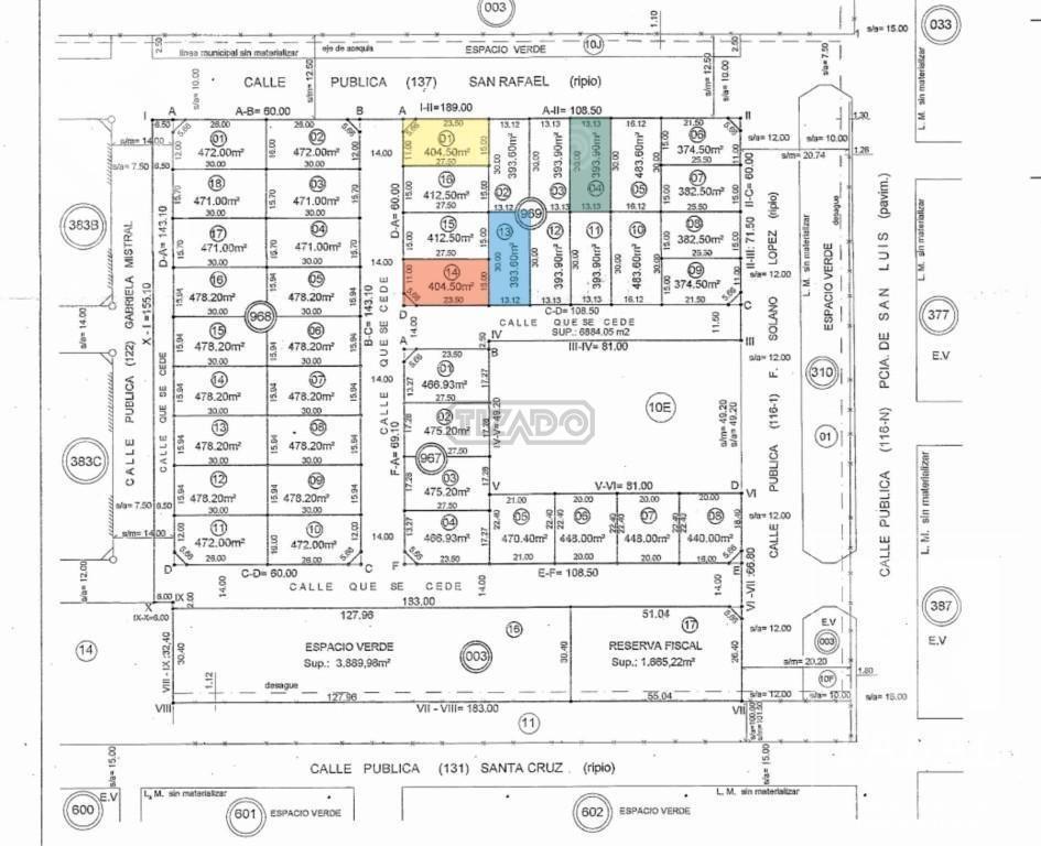 Venta de 2 lotes de 405m2 y 402m2, en muy linda zona de Cipolletti, B° Los Plátanos, acceso por calle San Luis y Santa Cruz, rápida salida a ruta 151 y a 5 minutos del centro de Cipolletti. Excelente Nivel constructivo, estos lotes son aptos para construcción de 2 unidades funcionales en Dúplex. Cuentan con todos los servicios