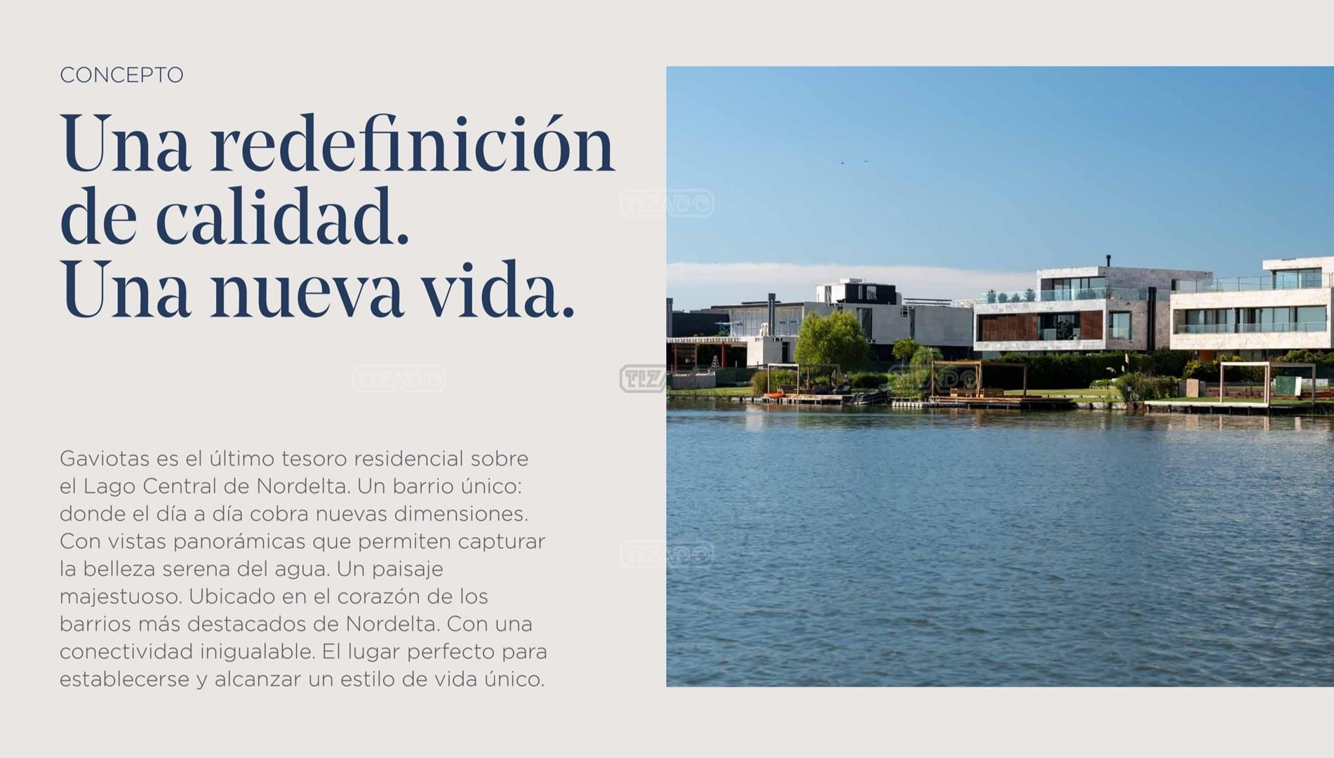 Lote al lago central en Gaviotas, Nordelta Ubicado en uno de los desarrollos más recientes de Nordelta, este lote de 954 m² ofrece una excelente combinación de ubicación, entorno y proyección. Su salida al lago central permite proyectar una vivienda con vistas abiertas, privacidad y una conexión directa con el paisaje natural. Gaviotas se distingue por su diseño moderno, su cercanía a Nordelta Centro y su integración con los principales accesos, consolidándose como una de las zonas con mayor crecimiento dentro de Nordelta. Una oportunidad para construir con proyección y calidad de vida, en un entorno en constante valorización. Consultanos para más información. Posibilidad de ceder el plan de pago. Entrega fines del 2027