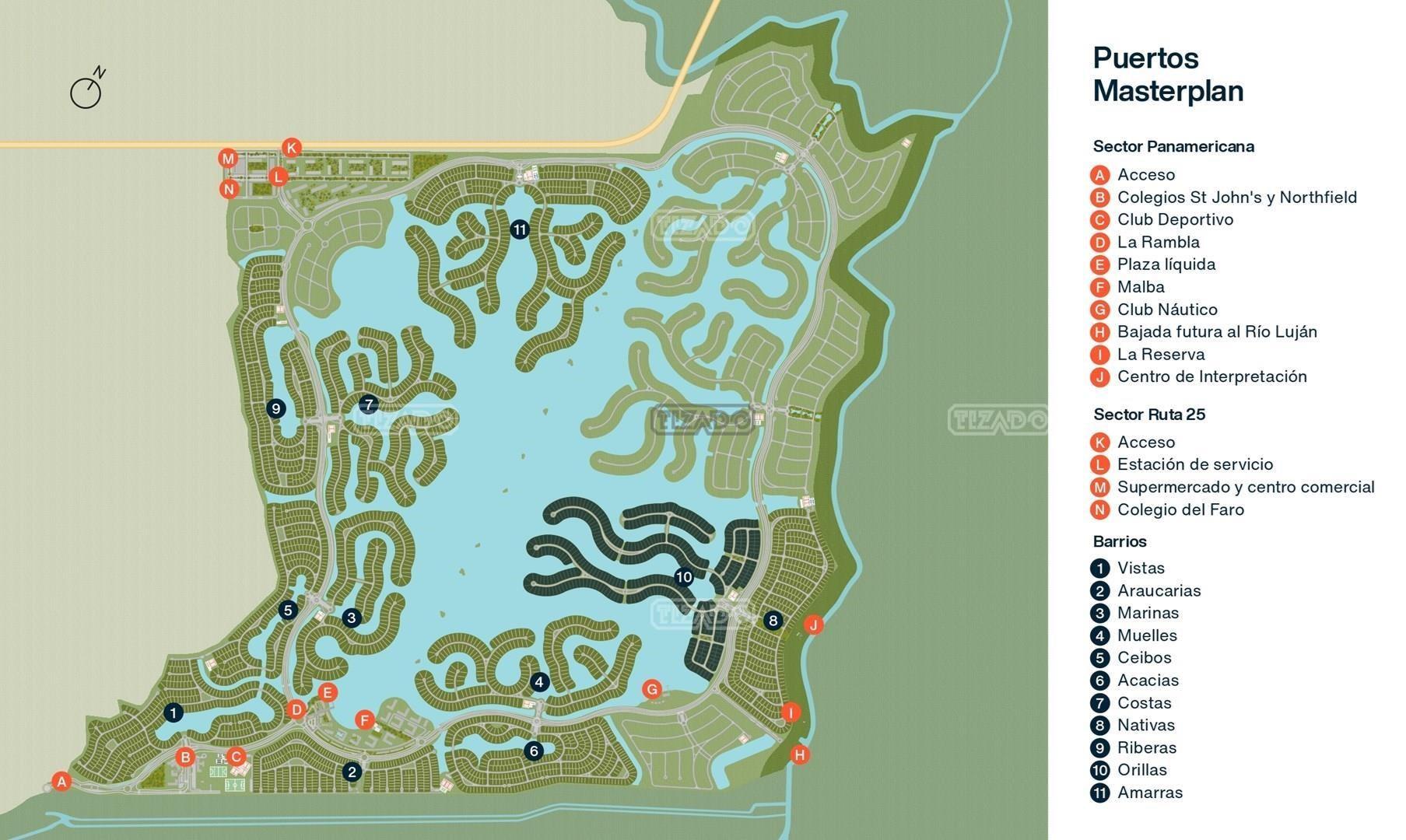 *Las fotos, ilustraciones y planos son a mero efecto interpretativo, carecen de rigor técnico y se encuentran sujetas a posteriores modificaciones. Puertos es tranquilidad y contacto con la naturaleza. Y a la vez, toda la comodidad y la infraestructura de una ciudad. Más de 1.400 hectáreas; un gran lago central que convoca todas las miradas; 15 barrios, de los cuales once ya se lanzaron a la venta; y 60 hectáreas de reserva natural. Cultura ecológica. Diseño orgánico de los espacios, para simplificar la movilidad. Bicicletas de uso público y un trazado de lagos interconectados que permite llegar navegando a cualquier punto de la ciudad. Un proyecto paisajístico desarrollado en función de la flora autóctona y un programa de arte público.