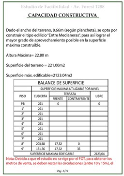 TERRENO 8,66X25, APTO PARA EDIFICIO ENTRE MEDIANERAS DE PB+9 PISOS. SUPERFICIE TOTAL CONSTRUIBLE 2123M2, SUPERFICIE VENDIBLE 1600M2 APROX. PLUSVALIA U$S 90.000. HAY ESTUDI DE PREFACTIBILIDAD REALIZADO.